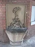 The station was built from 1872 to 1873 during the construction of the Frankfurt–Bebra railway and was given an entrance building in Renaissance Revival style. It was commissioned by the Königliche Eisenbahndirektion (Royal Railway Division) of Frankfurt. Because of the development of the city around the line which was originally laid on the same level as the roads, the railway was put on an embankment between 1912 and 1926 so that the increasing road traffic could run under it. This forced the rail track field to be elevated. A new station building was out of the question because of the depressed economic conditions. The entrance building was radically restructured in the 1920s with a "conservative-traditionalist” appearance. The entrance building is listed as a monument under the Hessian Monument Protection Act.[4] There is fountain by Bruno Schaefer called Vogelbrunnen ("bird fountain") on the platform between tracks 1 and 2.