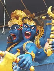 Ogoh-ogoh are statues built for the Ngrupuk parade, which takes place on the eve of Nyepi day in Bali, Indonesia. Ogoh-ogoh normally have form of mythological beings, mostly demons. As with many creative endeavours based on Balinese Hinduism, the creation of Ogoh-ogoh represents spiritual aims inspired by Hindu philosophy.[1][2]