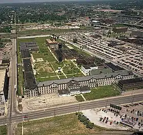 The Ohio Penitentiary, also known as the Ohio State Penitentiary, was a prison operated from 1834 to 1984 in downtown Columbus, Ohio, in what is now known as the Arena District. The state had built a small prison in Columbus in 1813, but as the state's population grew the earlier facility was not able to handle the number of prisoners sent to it by the courts. When the penitentiary first opened in 1834, not all of the buildings were completed. The prison housed 5,235 prisoners at its peak in 1955. Conditions in the prison have been described as "primitive," and the facility was eventually replaced by the Southern Ohio Correctional Facility, a maximum security facility in Lucasville. During its operation, it housed several well-known inmates, including General John H. Morgan, who famously escaped the prison during the Civil War, "Bugs" Moran, O. Henry, Chester Himes, and Sam Sheppard, whose story is said to have inspired the movie The Fugitive. A separate facility for women prisoners was completed within the walls of the Ohio Penitentiary in 1837. The buildings were demolished in 1998.[1]