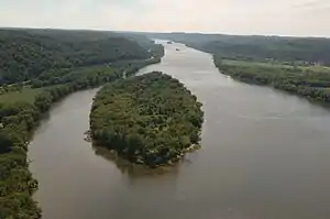 The Ohio River Islands National Wildlife Refuge (ORINWR) is a National Wildlife Refuge (NWR) in non-contiguous sites consisting of islands along 392 miles (631 km) of the Ohio River, primarily (85% of acreage)[2] in the U.S. state of West Virginia. There are also two islands upstream in Beaver County, Pennsylvania and a pair downstream in Lewis County, Kentucky.[3] Going downstream, the refuge is currently located in parts of these counties: Beaver, Brooke, Ohio, Marshall, Wetzel, Tyler, Pleasants, Wood, Jackson, Mason, and Lewis. All counties are in West Virginia, with the exceptions in Pennsylvania and Kentucky mentioned above. The ORINWR was established in 1990 and consists of 3,354 acres (13.57 km2) of land and underwater habitat on 22 islands and four mainland properties. The refuge headquarters and visitor center is located in Williamstown, West Virginia. Prior to its establishment, West Virginia was the only state of the United States without a NWR.