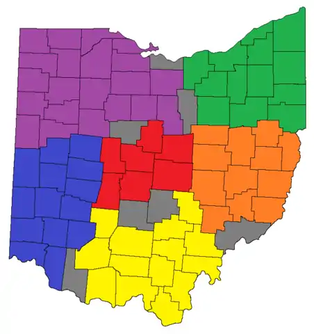 This region includes the counties of Allen, Auglaize, Crawford, Defiance, Fulton, Hancock, Hardin, Henry, Huron, Lucas, Mercer, Ottawa, Paulding, Putnam, Richland, Sandusky, Seneca, Van Wert, Williams, Wood, and Wyandot, as well as schools within Ashland, Erie, and Marion counties.