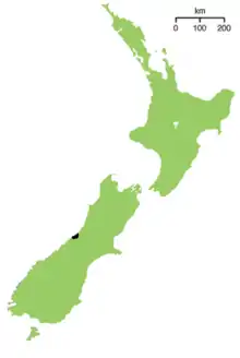 The Okarito brown kiwi lives in the Okarito forest on the West Coast of New Zealand's South Island.[4][6] On 29 June 2010, three breeding pairs were released onto Blumine Island as part of a breeding program.[10]