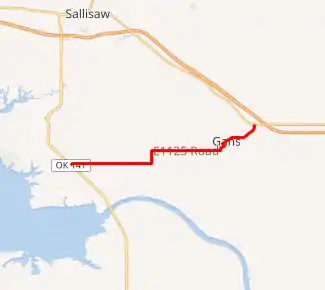State Highway 141 (SH-141) is an 8.24-mile-long (13.26 km)[1] state highway in Sequoyah Co., Oklahoma, USA. It connects U.S. Route 59 (US-59) to US-64 and runs through Gans. It has no lettered spur routes.