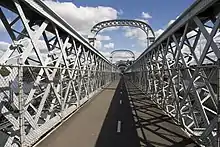 Rail infrastructure removed from the bridge deck and replaced with bitumen footway.[1]