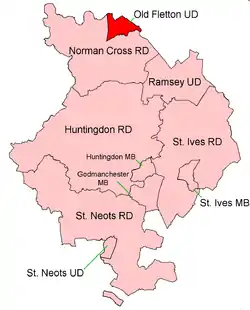 Old Fletton was an urban district in the county of Huntingdonshire and then (from 1965) Huntingdon and Peterborough. The urban district was abolished under the Local Government Act 1972 and now forms part of the city of Peterborough in Cambridgeshire.