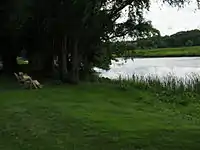 The town of Lyme was set off from Saybrook (now known as Deep River), which is on the west bank of the river mouth, on February 13, 1665. South Lyme was later incorporated from Lyme in 1855, then renamed Old Lyme in 1857 because it contains the oldest-settled portion of the "Lymes".[2] Old Lyme occupies about 27 square miles (70 km2) of shoreline, tidal marsh, inland wetlands and forested hills. Its neighbor to the north is the town of Lyme, and to the east is East Lyme. Other placenames from the same root are Hadlyme (between Lyme and East Haddam) and South Lyme (a beach resort area of Old Lyme). The placename "Lyme" derives from Lyme Regis, a small port on the coast of Dorset, England, from which it is believed the early settlers migrated in the 17th century.[3] The picturesque Old Lyme Cemetery contains the graves of the original settlers. The Duck River flows through the cemetery and into the Connecticut River at Watch Rock Park.