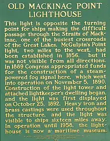 - "Michigan Historical Markers, Old Mackinac Point Light". Archived from the original on 2014-07-17. Retrieved 2008-04-06.