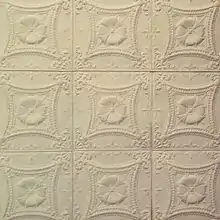 The church's ceiling, measuring approximately 15 feet (4.6 m) in height, is clad in pressed metal panels. A small opening allows for access to the church's attic. The unadorned window wells measure approximately 1 foot (0.30 m). The interior walls are covered in plasterboard, which remains unfinished.[3]