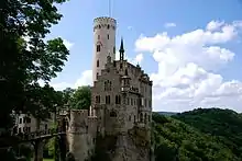 The Old Jail is modeled after Lichtenstein Castle. It was designed by architect Henry Wolters, who was also the architect responsible for designing the Old Vanderburgh County Courthouse. Both structures were built at the same time and still have a tunnel that connects them. The tunnel can still be accessed from Woods & Woods law office.[3]
