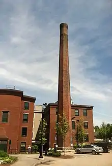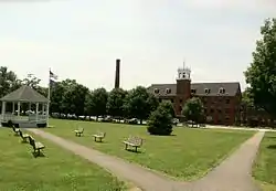 An earlier wooden mill built on the site in 1832 was destroyed by fire, and the existing brick structure built in 1862.[2] Primarily owned by Quakers, the mill, one of the first to automate the manufacture of blankets, produced uniforms and blankets for Union soldiers during the American Civil War.[2] At its foundation level has been preserved one of the earliest steam engines in the United States, and the only one of its kind to survive.