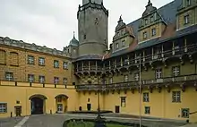 According to an agreement from 1491, the duchy was supposed to pass to future Polish King John I Albert, but eventually in 1495 it was sold to Duke Henry I of Münsterberg, son of the Bohemian (Czech) king George of Poděbrady.[6] His grandson Duke John of Münsterberg-Oels established a gymnasium at Oleśnica in 1530. When the Czech Podiebrad family became extinct in 1647, town and duchy were inherited by the Swabian dukes of Württemberg, and in 1792 by the Welf dukes of Brunswick-Lüneburg.
