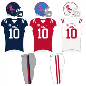 - "Why Ole Miss replaced its script logo with old-school numbers on its football helmets against LSU". The Oxford Eagle. October 21, 2017. Retrieved December 28, 2017.