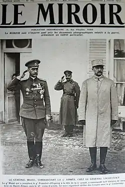 Olivier Charles Armand Adrien Mazel (16 September 1858 – 10 March 1940) was a French Army general during World War I. He commanded the First (25 March 1916 – 31 March 1916) and Fifth Armies (31 March 1916 - 22 May 1917) during the war.