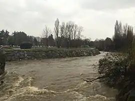 After crossing San Lorenzo (fraction of Parabiago) and Nerviano, the Olona river receives its two main tributaries, the Bozzente and the Lura, at Rho.[24] In Rho there is also the "deviator of the Olona", completed in the eighties of the twentieth century, which flows into Lambro Meridionale.[8] This work has always been a source of controversy: on the one hand it has not avoided all the floods as it was designed and, on the other hand, it carries polluted water towards the Ticino.[25] In November 2002, in particular climatic conditions,[26] the Olona, the Seveso, the spillway and the Ticino overflowed.