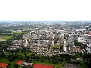 The Olympic Village (German: "Olympisches Dorf") was constructed for the 1972 Summer Olympics in Munich, Germany and was used to house the athletes during the games. The Munich massacre took place in one of its apartment blocks, Connollystraße 31; the street was named for an Irish-American participant in the 1896 Olympics.[1] The Olympic Village is in the north part of the Olympiapark.