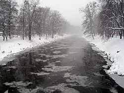 ![]() The Olza as seen from the bridge connecting Český Těšín to Cieszyn during winter | |