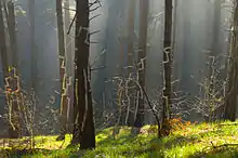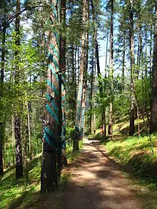 Oma forest is a work of art created by Agustin Ibarrola, a Basque sculptor and painter. The work is located in a forest near Kortezubi (Bizkaia, Basque Country), in the natural reserve of Urdaibai. It is also known as the "painted forest".