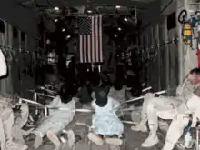 Khadr was given on-site medical attention, during which time he repeatedly asked the medics to kill him. Delta Force soldiers ordered them not to harm the prisoner.[57] Khadr was loaded aboard a CH-47 helicopter and flown to Bagram Airbase in Afghanistan, losing consciousness during the flight.[41][58]