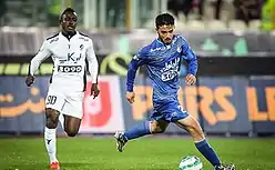 On 4 April he had an argument with his teammate, Yaghoub Karimi after being substituted.[15] Due to his behaviour Alireza Mansourian decided to ban him from group training.[16] He was also excluded from the squad to play against Gostaresh Foulad on 4 April.[17] On 7 April he finally got the permission to join the team training with the rest of the squad.[18] He was included in the called up squad for the AFC Champions League match against Lokomotiv Tashkent but he sat on the bench during the match.[19] He returned to the starting line-up in the match against Saba Qom on 15 April which resulted in a 2–1 win for Esteghlal.[20] On 29 April he scored a stunner from outside of the box with his weaker foot, in Esteghlal's 2–1 win against Padideh.[21] He ended the season with 3 goals in 18 appearances in all competition as Esteghlal finished the season in second place in the league, were eliminated in the quarter-finals of the Hazfi Cup by Naft Tehran and qualified from the group stage of Champions League. He signed a contract extension through 2019 with Esteghlal on 16 June 2017.[22] He was named "Persian Gulf Pro League Young Player of the Year" by F.F.I.R.I. at the end of the season.[23]