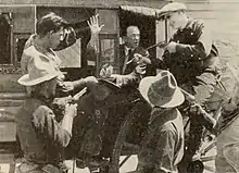 On the Jump is a 1918 American silent comedy film directed by Raoul Walsh and starring George Walsh, Frances Burnham and James A. Marcus.[1] A journalist resigns from a newspaper when it is taken over a pro-German sympathiser, and sets out to expose him as a German agent.