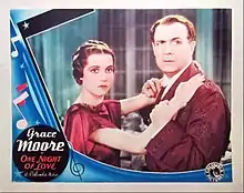 One Night of Love is a 1934 American Columbia Pictures romantic musical film set in the opera world, starring Grace Moore and Tullio Carminati. The film was directed by Victor Schertzinger and adapted from the story Don't Fall in Love, by Charles Beahan and Dorothy Speare.
