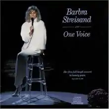 One Voice is the third live album released by Barbra Streisand. The album was recorded at a benefit concert at Streisand's Malibu, California home on September 6, 1986 and released in April 1987.[2] It has been certified Platinum in the United States and New Zealand for sales of 2,000,000 and 15,000 copies.[3] According to the liner notes of Barbra's retrospective box set: Just for the Record, the album also received a record certification in Australia, Canada, the Netherlands and the United Kingdom.[4]
