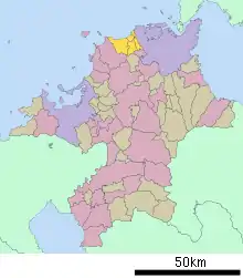 - Kurosaki(黒崎町)- Merged to Yahata City in 1926, currently Yahata Nishi-ku, Kitakyūshū