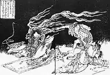 In Japanese traditional beliefs and literature, onryō (怨霊, literally "vengeful spirit", sometimes rendered "wrathful spirit")[1] refers to a ghost (yūrei) believed to be capable of causing harm in the world of the living, injuring or killing enemies, or even causing natural disasters to exact vengeance to "re-address" the wrongs it received while alive, then taking their spirits from their dying bodies.