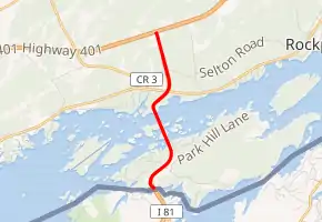 King's Highway 137, commonly referred to as Highway 137, is a provincially maintained highway in the Canadian province of Ontario that serves to connect the northern end of Interstate 81 in New York with Highway 401, via the Canadian span of the Thousand Islands Bridge. While this road connected to the international bridge when it opened in August 1938, it was not designated as a King's Highway until 1965. Highway 137 passes through a portion of the Canadian Shield, a geographic feature which aided construction of the three Canadian spans of the Thousand Islands Bridge. These bridges, all of different designs, travel 538 m (1,765 ft) across the Saint Lawrence River. Highway 137 is 4.3 km (2.7 mi) in length and is located entirely within the United Counties of Leeds and Grenville.