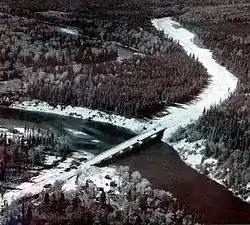 Although the jurisdiction of the soon-to-become Department of Highways did not extend beyond Pembroke, a rough trail continued to North Bay, and a trunk road constructed by the Department of Northern Development beyond there to Sault Ste. Marie by 1923, roughly following the route of Highway 17 today.[4] The Pembroke and Mattawan Road Colonization Road was constructed between 1853 and 1874 to encourage settlement in the Upper Ottawa Valley.[7][8] Between Mattawa and North Bay, many aboriginals and early settlers made use of the Mattawa River, the headwaters of which lie just north of Lake Nipissing. From there they would travel down the French River into Georgian Bay and onwards to Lake Superior. Highway 17 between Mattawa and Sault Ste. Marie roughly traces this early voyageur route.