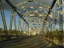 At Delhi, Highway 3 turns south for 4 km (2.5 mi) before returning to its eastward orientation. It continues through farmland to the town of Simcoe, where it meets Highway 24. From Simcoe to Canborough, the highway is nearly straight as an arrow, with an occasional jog to the northeast.[8] It enters Haldimand County and intersects Highway 6 in Jarvis. At Cayuga it crosses the Grand River;[4] until 2014, a five-span steel girder bridge crossed the river, but it has since been replaced by a concrete structure.[9] At Canborough, the historic Talbot Trail ends and Highway 3 veers south to Dunnville,[10] briefly travelling along the northern bank of the Grand River and gradually curving back eastward. East of Dunnville, the route follows Forks Road into Wainfleet and the Niagara Region.[4] At Chambers Corners it turns south and passes through Wainfleet village, crossing the old Feeder Canal which once supplied the Welland Canal with water from the Grand River.[10] Just north of Lake Erie, Highway 3 turns east and travels straight towards Port Colborne, passing just south of the Wainfleet Bog. At Townline Road, the boundary between Wainfleet and Port Colborne, the central section ends and the roadway continues as Niagara Regional Road 3 through the city, meeting the southern end of Highway 58.[1][4]