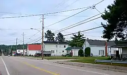 Highway 522 continues through Golden Valley and Bear Valley, south of the Loring Deer Yard, before meeting Highway 524 at Farley's Corners. There the highway briefly curves southwards to Commanda, where it crosses the Commanda Creek and resumes its eastward journey. It passes through Gurd Township for an additional 20 kilometres (12 mi) before entering Trout Creek.[4][5] Within that town the route is maintained under a Connecting Link agreement between Barrett Street and the junction with Highway 522B (Main Street) downtown.[6] At that junction, drivers must turn south to remain on the highway. It continues another 2.6 kilometres (1.6 mi) to an interchange with Highway 11.[4][5]