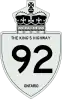 King's Highway 92, also known as Highway 92, was a provincially maintained highway in the Canadian province of Ontario. The route connected Highway 26 west of Wasaga Beach with Highway 27 in Elmvale. Highway 92 was established in 1936, although it did not extend through Wasaga Beach to Highway 26 until the early 1980s. The entire route was downloaded in 1997 and transferred to Simcoe County. Today, the section of the former highway outside Wasaga Beach is known as Simcoe County Road 92.