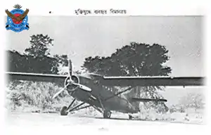 The Dakota was modified to carry ten 500 pound bombs, for low-level bombings. A section of the floor was cut off and a jury-rigged devise was installed to drop the bombs on target.[43] Near the back door of the Dakota, a bomb rack was installed to hold 5 1000 pound bombs. An officer was to manually push them off the rack and one second interval, after the pilot signaled him with a bell. Captain Abdul Khaleque, Captain Alamgir Satter, and Captain Abdul Mukit, all destined to earn the Bir Pratik award, piloted the Dakota. Flight Lieutenant Sinha of IAF was the instructor and flight safety officer.[44][45]