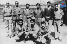 Nine pilots were assembled at Dimapur to fly the 3 aircraft. Flight Lieutenant Shamsul Alam, along with Flight Lieutenant Badrul Alam, were PAF trained pilots. They were later joined on October 14, 1971 by Flight Lieutenant Sultan Mahmud, who had been previously wounded in a guerrilla operation in Chittagong, which had delayed his arrival, and he became the Commanding Officer of this unit.[36] Captains Alamgir, Kazi Abdus Sattar, Shahabuddin Ahmed and Abdul Mukeet were F-27 pilots from PIA, while Captain A.S.M.A Khaleque was a PIA veteran with 10,000 hours in a Boeing 707.[37] Captain Akram Ahmad worked for East Pakistan Plant Protection Agency, and Captain Sharafuddin, deputed to the same agency, was actually an employee of Ciba-Geigy company.[38]
