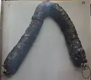 Socks were long thin canvas bags of incendiary material each weighing about 6 pounds (2.7 kg). Socks were packed with wood wool, bound with wire and soaked in boiling paraffin wax.[3][17] Each Outward balloon could carry three socks. The whole bundle measured about 27 by 10 by 10 inches (690 mm × 250 mm × 250 mm).[19] When dropped, socks formed a V‑shaped sausage designed to catch in the crown of a tree.[3] Fuses were inserted in each end of the device and it would burn from each end for 15 minutes.[3] In 1941 the Royal Navy had a stock of 10,000 such socks already fused and ready to be used and another 20,000 bodies that could be brought forward as required.[3][lower-alpha 4]