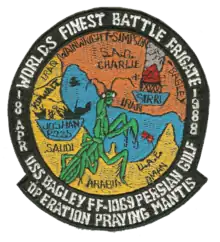 Operation Praying Mantis was an attack on 18 April 1988, by U.S. forces within Iranian territorial waters in retaliation for the Iranian mining of the Persian Gulf during the Iran–Iraq War and the subsequent damage to an American warship.