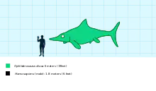 Ophthalmosaurus could likely dive for around 20 minutes. Assuming a conservative crusing speed of 1 metre per second (3.3 ft/s) (2 metres per second (6.6 ft/s) being more likely), Ophthalmosaurus could reach depths of 600 metres (2,000 ft) or more during a dive, reaching the mesopelagic zone.[16]