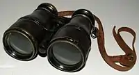 A typical Porro prism binoculars design showing the arrangement of lenses in the optical train and the line of sight