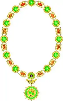 Order of Saparmurat Türkmenbaşy the Great (Turkmen: Türkmenistanyň ilkinji Prezidenti Beýik Saparmyrat Türkmenbaşy) is a state award of Turkmenistan established by President Gurbanguly Berdimuhamedov in honor of his predecessor Saparmurat Niyazov.[1] The decree constituting its establishment was signed on 29 November 2007.[2][3][4][5]