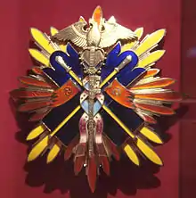 The Order of the Golden Kite (金鵄勲章, Kinshi Kunshō) was an order of the Empire of Japan, established on 12 February 1890 by Emperor Meiji "in commemoration of Jimmu Tennō, the Romulus of Japan".[1] It was officially abolished 1947 by the Supreme Commander for the Allied Powers (SCAP) during the occupation of Japan, after World War II.
