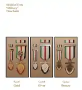 The following is a list of military medals, each consisting of three levels (Gold, Silver and Bronze):