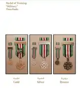 - The Medal of Training is composed of three ranks (Gold- Silver- Bronze) and can be awarded by the order of the President to military personnel and civilians of the staffs and troops of the Palestinian security services who have passed a high level of training and proved high commitment and performance.