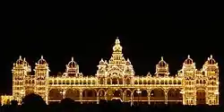 The historical origins of the kingdom are obscure. The kingdom is first mentioned in early 16th-century Kannada literature from the time of the Vijayanagara King Achyuta Deva Raya, while the kingdom's own earliest available inscriptions date from the rule of a petty chieftain, Timmaraja II, in 1551.[7] It is known that the kingdom originated as a small state based in the modern city of Mysore and that it was established by two brothers, Yaduraya (also known as Vijaya) and Krishnaraya. The origin of the brothers is, however, contested. Some historians claim a northern origin, saying that they came from Dwaraka, while others argue that they were originally from the Karnataka region. The earliest mention of their origin in the city of Dwaraka and their journey down to the Mysore region is found in the writings of Govinda Vaidya (17th century), court poet of Narasaraja Wodeyar, and is later repeated in the writings of Tirumalarya, court poet of Chikka Devaraja Wodeyar.[8][9] According to these texts, the two brothers arrived at Mysore in 1399, for reasons which differ by text. At that time, the incumbent King Chamaraja died, leaving behind his queen, Devajammanni, and a princess, Chikkadevarasi, but no male heir to the throne. Yaduraya killed Maranayaka, the army commander who tried to assert his power over the royal family, married princess Chikkadevarasi, and was crowned with the feudal title "Wodeyar", which the ensuing dynasty retained.[8][10]