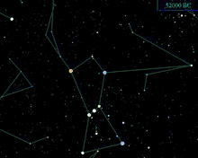 The earliest known depiction linked to the constellation of Orion is a prehistoric (Aurignacian) mammoth ivory carving found in a cave in the Ach valley in West Germany in 1979. Archaeologists estimate that it is 32,000 to 38,000 years old.[3][4][5] The distinctive pattern of Orion is recognized in numerous cultures around the world, and many myths are associated with it. Orion is used as a symbol in the modern world.