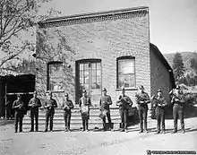 Oro Fino, brass band and brick building ca 1889