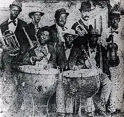 In the early 20th century, there were still several popular orquestas típicas, such as those directed by Enrique Peña and Félix González. In 1915, charangas began to replace orquestas típica, a process which was largely complete by 1925.[2] Charangas would become, along with son conjuntos and Cuban-style big bands, one of the main precursors of the salsa ensemble, which is characterized by the inclusion of multiple trombones. Salsa ensembles can also feature trumpets along with piano, double bass, güiro, conga and bongó.[3] In the salsa context, the term típico usually refers to the sound of the conjuntos of the 1940s, such as Arsenio Rodríguez's, or to those of the original charangas danzoneras (charangas típicas), such as Arcaño y sus Maravillas, since orquestas típicas never reached the United States.