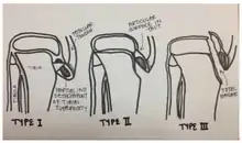 Type III: Complete fracture (through articular surface) including high chance of meniscal damage. This type of fracture usually requires surgery.