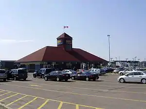 The Grand Trunk Railway between Montreal and Toronto was completed in 1856[2] and the first Oshawa station was located on the north end of Albert Street. In 1923 the Grand Trunk was absorbed by the Canadian National Railway who, in the 1960s, built a single-floor station with a flat roof west of the original station where the Canadian National Railway yard is now on the north side of the tracks. The building was expanded and upgraded by Via Rail in the early 1990s and GO Transit's Lakeshore East line was extended to there in 1995.