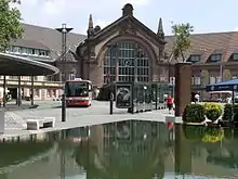 Osnabrück Hauptbahnhof is a railway station[4] located in Osnabrück, Germany. The station was opened in 1895 and is located on the Wanne-Eickel–Hamburg, Löhne–Rheine, Osnabrück–Bielefeld and the Oldenburg–Osnabrück lines. The train services are operated by Deutsche Bahn, Hamburg-Köln-Express, NordWestBahn, Eurobahn and WestfalenBahn. The station features two levels, with lines at right angles to each other.